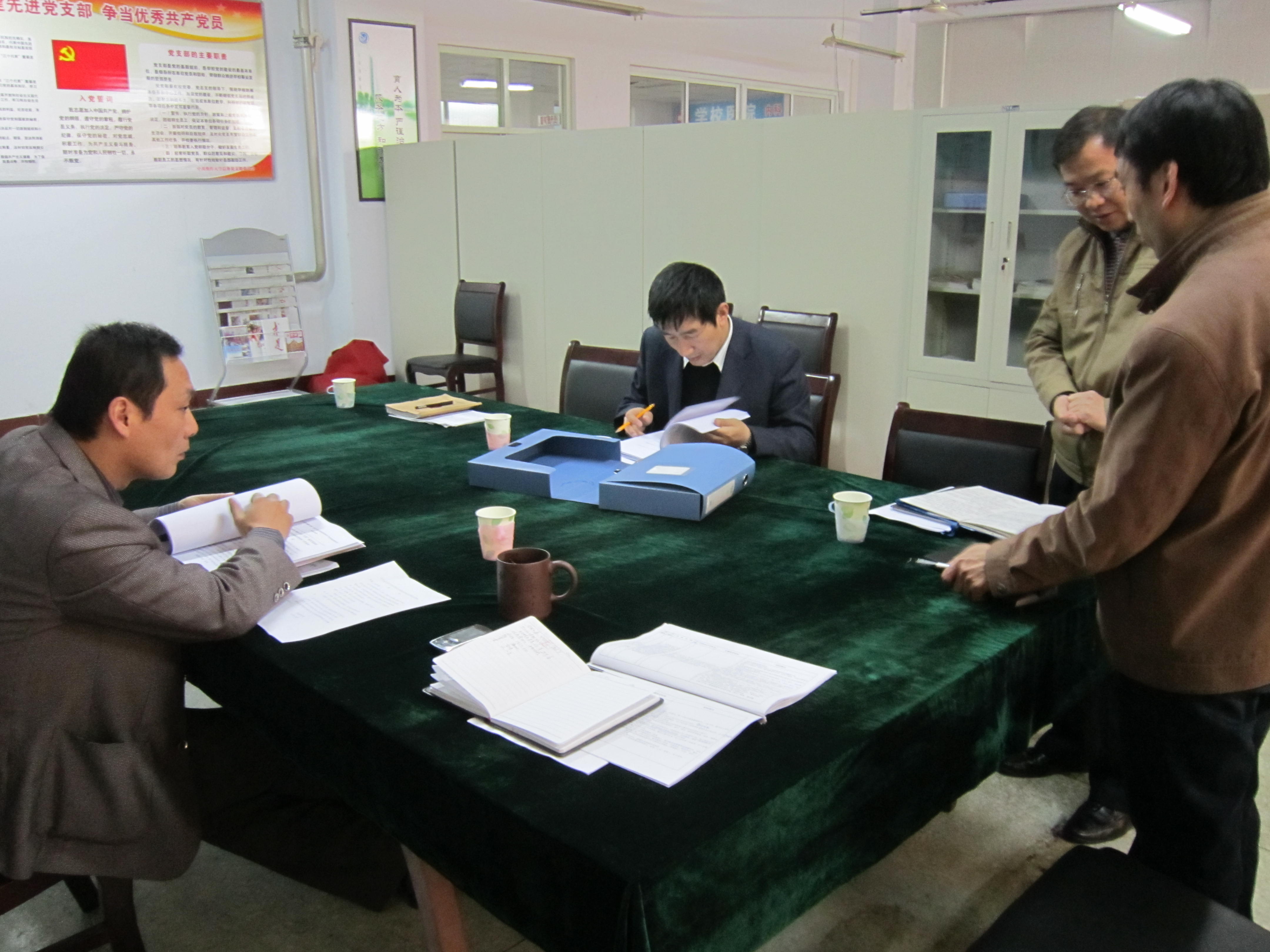 4月8日上午,学校党建评估指导组在校党委委员、办公室主任吴玉伦同志的带领下,组织部副部长张永强、纪检委靳国栋同志、校团委栗岩同志一行四人来到总务处党支部检查指导党建评估准备工作。