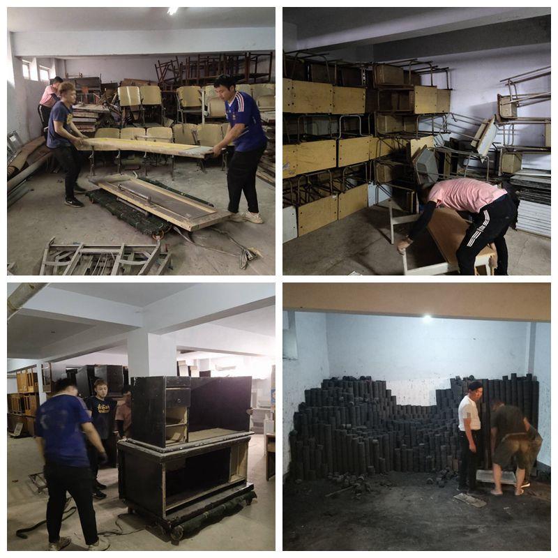 为配合房产科更合理的使用一教地下室的计划,资产科启动废旧家具报废程序,工作人员加班加点,在短时间内整理出符合报废要求的一教地下室内废旧家具资料,并于6月2日邀请财政局工作人员进行现场核查后,两科工作人员分别于6月9日、10日冒雨将一教地下室内废旧家具移至报废物品中转仓库,6月20日利用周末时间对进行了卫生打扫,北校区一教地下室卫生面貌焕然一新。房产科将根据学校的规划合理安排一教地下仓库的使用,提高利用率,使其能发挥更大的作用。